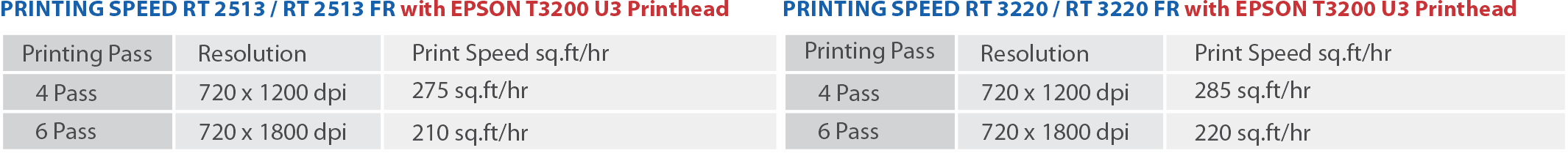| No. of Printheads | 3 EPSON T3200 U3 Print Heads (Standard) Up to 6 Print Heads (optional) | ||